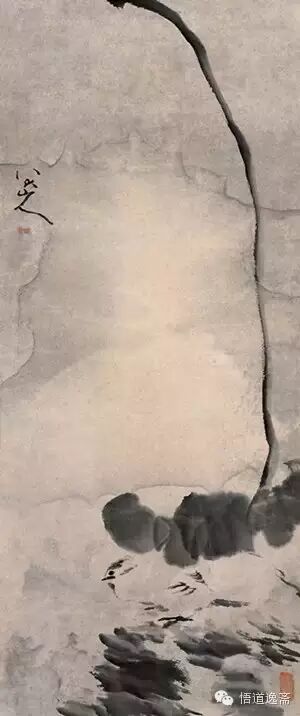 八大山人在方形构图中多採用截景、断景的方式来安排画面,他笔下的物象大多是不完整的形态,如图