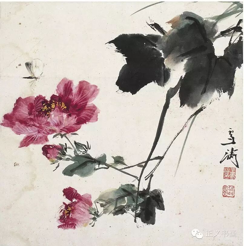 齐白石以浓墨画白菜,旁边并列两个带有黑蒂的深红小辣椒,色彩感觉十分鲜明。他画的黑白蜡台,插上红色蜡烛有着同样的效果。红黑二色产生的艺术感染力,古代人就很熟悉,如中国的漆器、希腊的瓶画。它有鲜明的对比,而又庄重饱满。我自己也有一些感受。牡丹是人所喜爱的一个花卉品种,唐代人赏牡丹成了长安、洛阳的一大风尚。历来文人、画工以此为题写诗作画的很多。然而封建文人是把它作为富贵象征来描绘的,今日人民对它的爱好、感受全然不同。我曾试以墨色描画枝叶,衬托红色花头,突破了红花一定要绿叶来扶的格式,除却了柔媚富贵之气。用色虽然减少,但整体效果突出而庄重;运用得好,色彩感觉未必是单调的,同时也更能在枝叶上发挥笔墨效果。