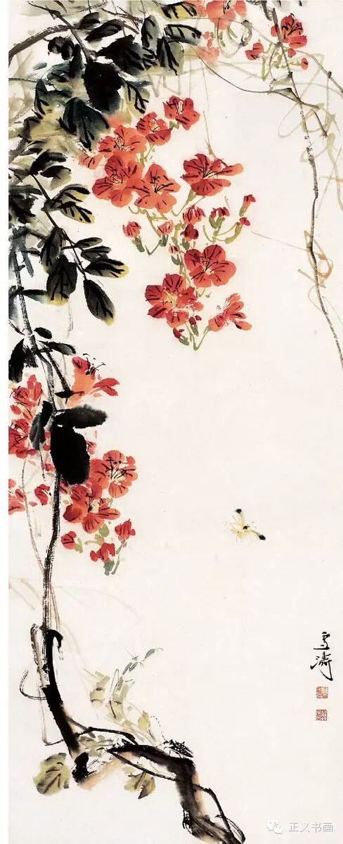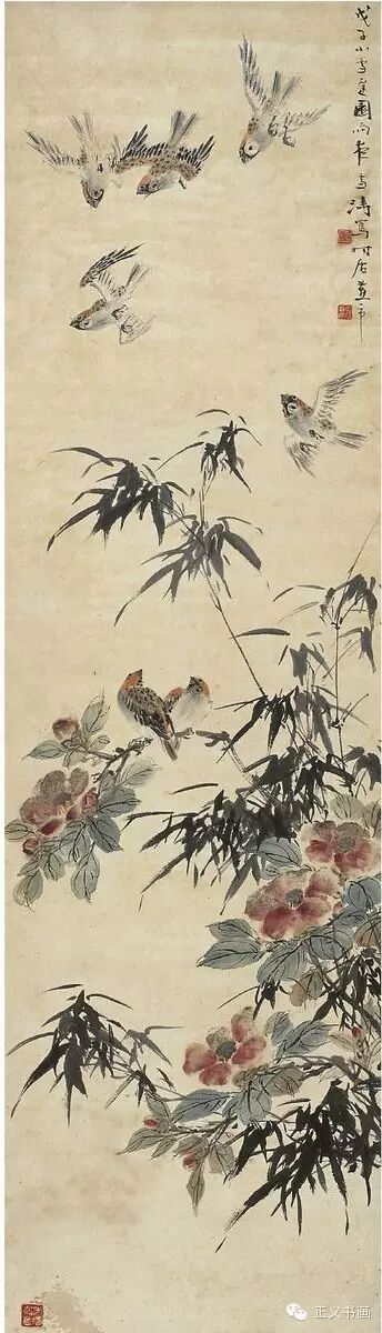 花鸟画是以描绘花卉、禽鸟来表现自然界的生命力,体现欣欣向荣的生气,从而给人以健康的艺术感染。它描绘的对象是大自然,因此培养对自然界的生命力,训练观察力的敏锐是主要的。不少前人也是这样做的。传说一位画家,为了体验草虫的形态,经常趴在草丛中观察,以至露水打湿了衣裳,可见观察之认真。我小时生活在农村,对自然界中的一情一景十分偏好,幼时养成的观察和写生习惯,对我一直影响很大。要认真地了解物象的结构、特点、习性和生活规律,画时才能做到心手相应。特别应当提到的是,有些人对所谓“写意花鸟画”有一定的误解,以为“写意”者,不必求其形似,只图练习笔墨,这是把对现实的观察、提炼、概括与不必研究对象的生活习性和结构特点混为一谈,其结果便是把生动、多样、变化丰富的大自然,不是画得千篇一律,就是非驴非马。有些画出自不注意观察人的手笔,是一眼可以看出的,这是画不好画的。花鸟画的源泉是生动的大自然,而不是他人的笔墨,提炼与概括也要源于对自然的观察,因此对自然界的观察是训练心眼的基本功。