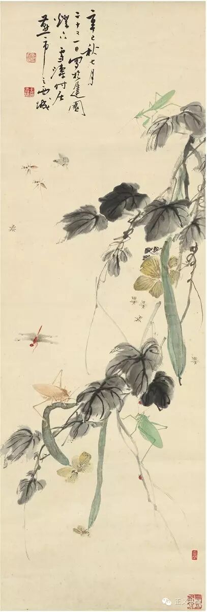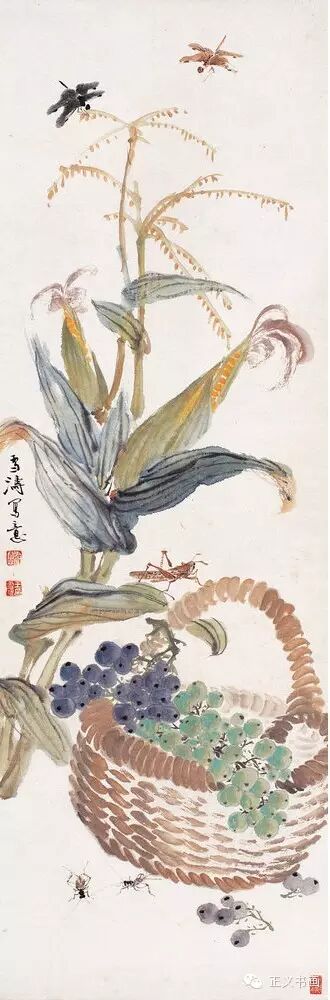 从总的方面讲,中国绘画传统是注重写意的,如同京剧艺术一样。不拘于机械的再现对象,更要把握对象的精神气质,着意于创造意境以感染观者。清末广东居窠、居廉的草虫有写生功夫,但缺少内在的精神,形同标本,也就失却了感人的意境。