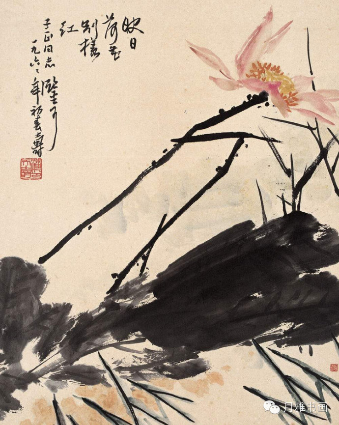 中国水墨画经历唐宋写实的过程,中间分出南宗艺术流派,徐渭八大的艺术实践影响后人继续前进,潘天寿具常人没有的胆识,其水墨空间布白大大方方,充满阳刚之气,以其画荷一例,爱莲的儒家情怀以杨诚斋的诗意为主旨,取其高洁之物辉映在阳光正气的氛围里,让艺术的境界异常的不凡。