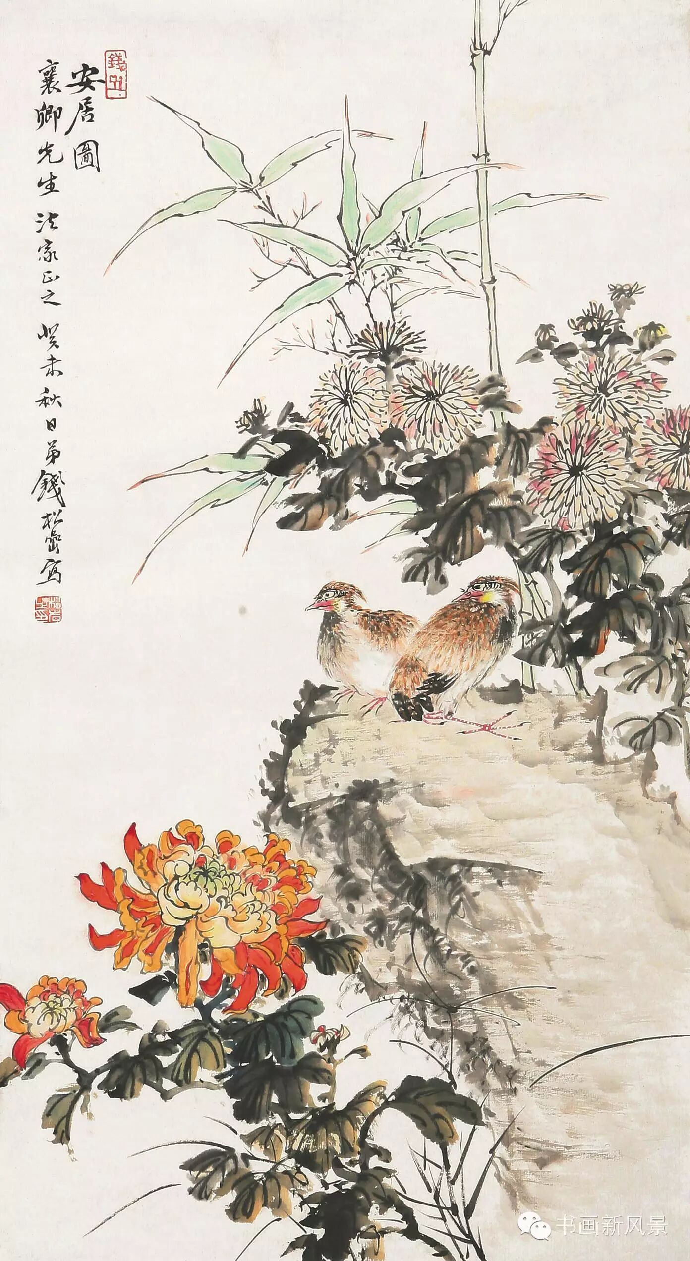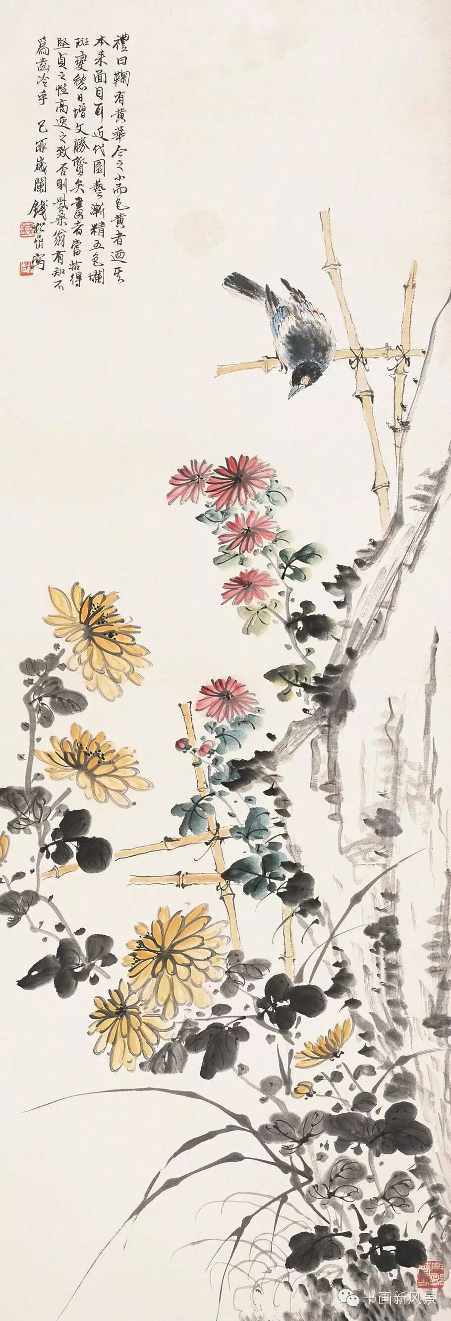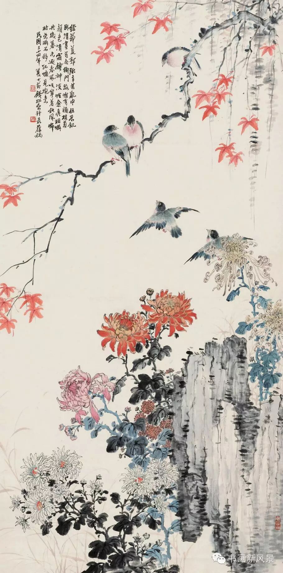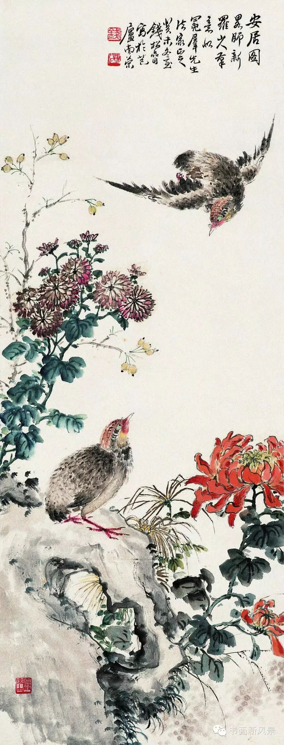 钱松喦强调骨法用笔,喜用“颤笔”,画风古拙、稳健、浑厚、沉着。在运用色彩上他更是大胆突破,作品绚丽明艳、五彩斑斓,,让人过目难以忘怀。