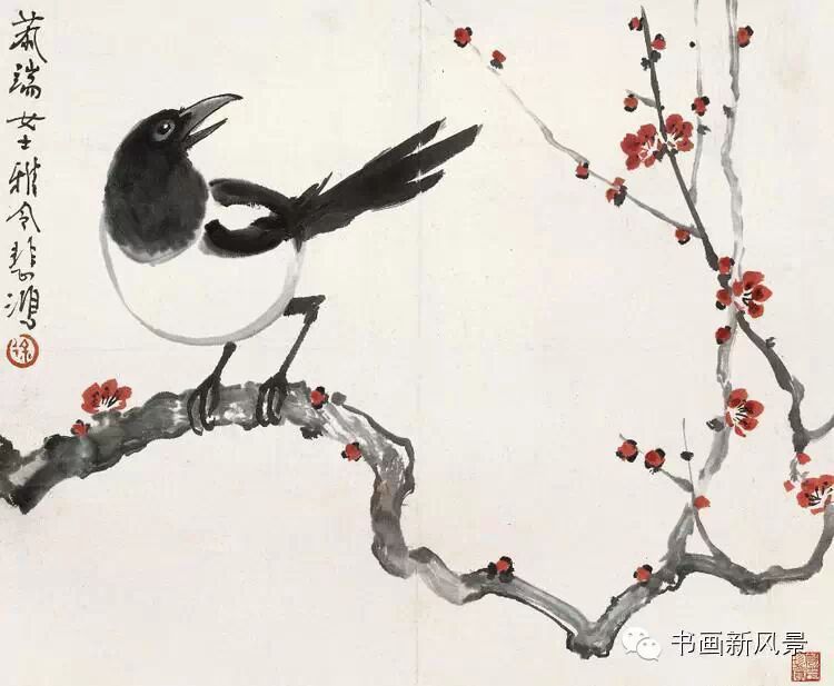 徐悲鸿一生致力于以西画的写实精神改良中国画,1918年即提出“古代之佳者守之,垂绝者继之,未足者增之,西方画之可采入者融之”这一主导思想,倡导“复兴中国艺术运动”,其影响之深广,堪谓“以西润中”的代表性画家和美术教育家。