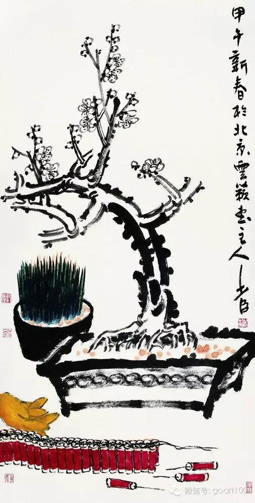 大写意花鸟画在达到很高境界时,画家本人在作画过程中并不完全是在画画儿。完全是画家本人情感的流露与宣泄!是画家本人对社会,对自然,对人生,对艺术的认识与理解。通过作画的方式宣泄到画面上。借物抒情,情感才是画面的核心价值。笔墨则属于次要位置。那种直抒胸臆的表达,笔墨则完全为情感而流露。笔墨自身的起伏、顿挫、回旋、转折、拖拽、浓、淡、干、湿、粗、细这些变化是随着画家本人情绪的变化而变化。是随着画家本人情感的流露而流露。而不是完全依托在物象上,笔墨形象在这个时候属于次要位置。一幅好的大写意花鸟画作品,我们除了看到它表象的笔墨以外,更多的关注画面上作者精神与情感的表达。那种画面上内在的精神往往比单纯的笔墨更能感染人,更能打动人,更能震撼读者的心灵。反之用笔很大,毫无内在可言。平,板,滑,流,则不属于大写意!所以说画画并不是单纯的画画,那样就太肤浅了。